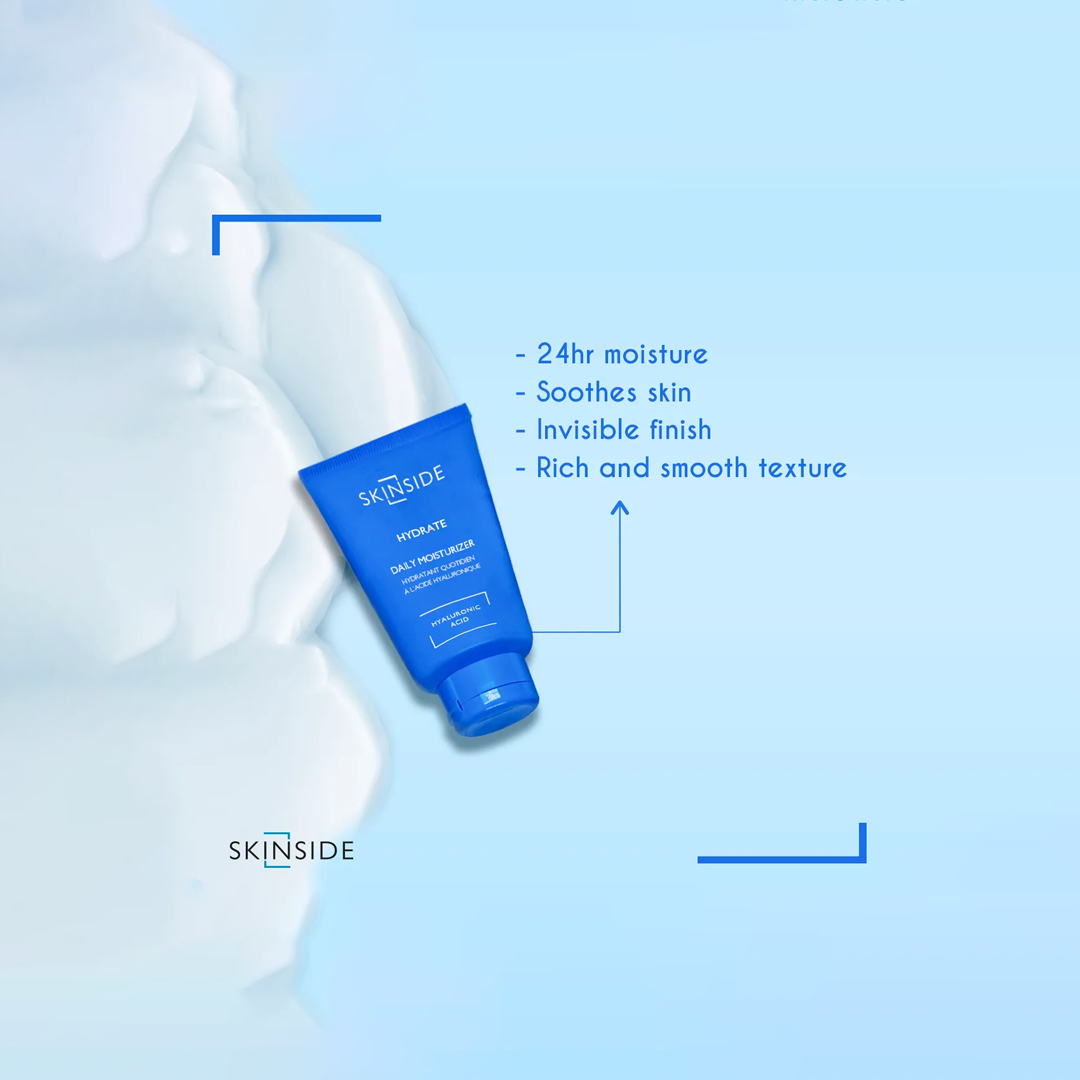 استمتعي بترطيب طول اليوم مع المرطب اليومي بحمض الهيالورونيك من سكين سايد. مرطب يدوم 24 ساعة ويسمح للبشرة بتجديد حمض الهيالورونيك الطبيعي فيها عشان بشرتك تكون ناعمه و مترطبه لأطول وقت. وهو مثالي لكل انواع البشره حتى البشره الحساسه لانه بيقلل من الخطوط الدقيقة في البشرة و بيساعد على استرجاع صحة البشرة بشكل عام.