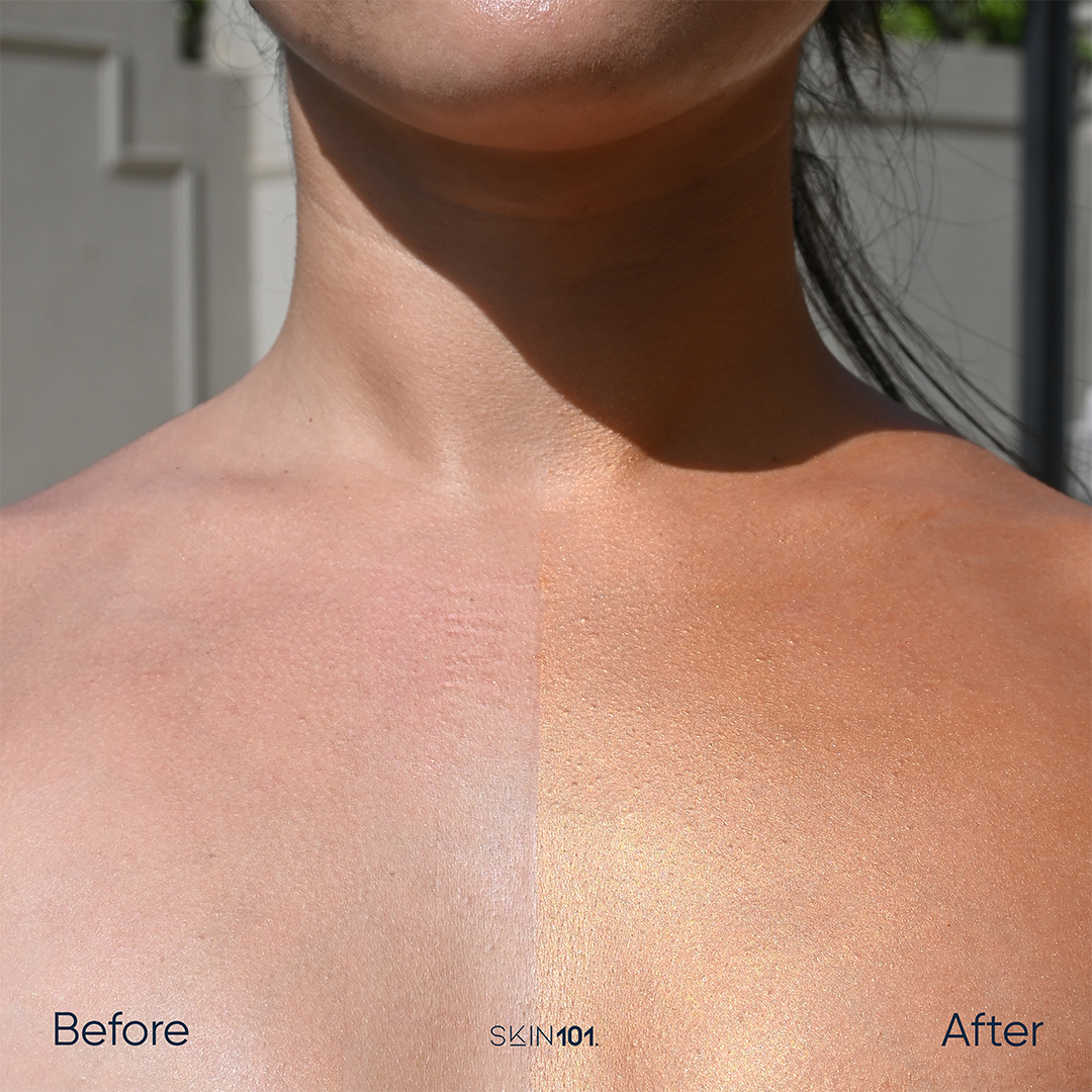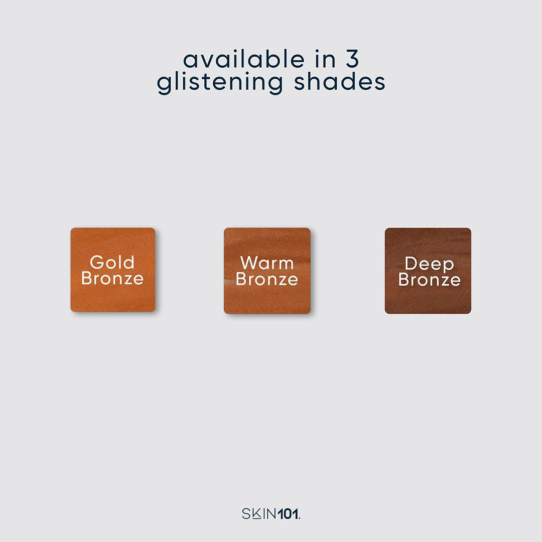 تمتعى بلوك متألق و لامع مع البودى جلو من سكين 101 بتركيبة فريدة هترطب الجسم و تمنحه النعومة. سبراى بقوام لطيف و درجات ألوان مختلفة عشان يناسب لون بشرتك و يمنحها لوك منور و حيوى و متألق.
