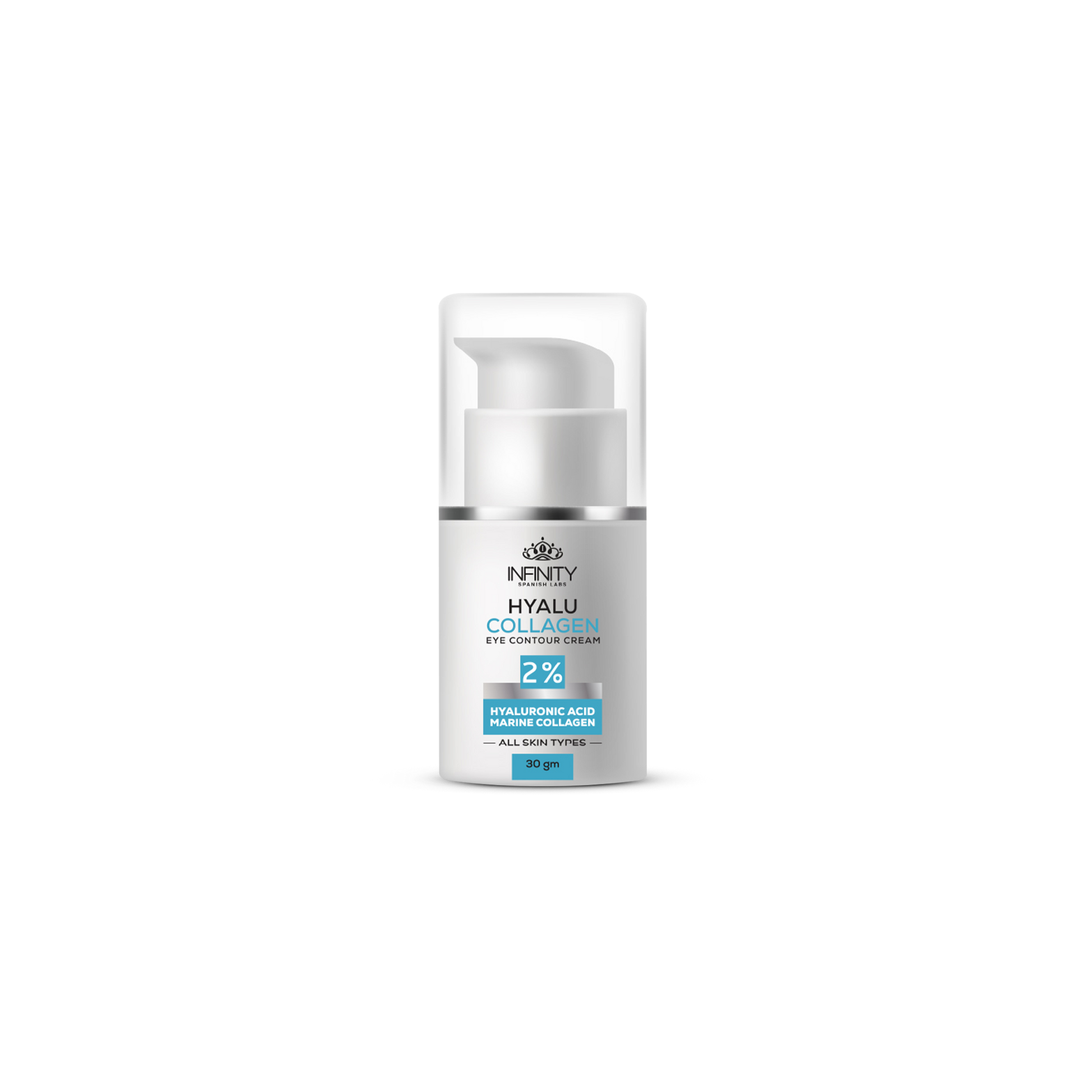 Infinity's Hyalu Collagen Eye Contour is specifically designed to nourish and hydrate the delicate skin around the eyes. It provides intense moisture to alleviate dryness in that area. Additionally, it has a brightening effect that helps diminish the appearance of dark circles and puffiness, resulting in a more vibrant and revitalized eye area.