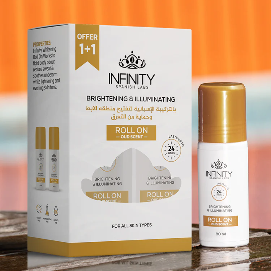 Infinity's Whitening Roll On is specifically designed to provide a long-lasting 24-hour protection against body odor, reduce underarm sweat and sooth the underarm area. Additionally, it brightens the underarms, promoting a more youthful and even appearance. Rest assured, this roll-on is safe for all skin types.