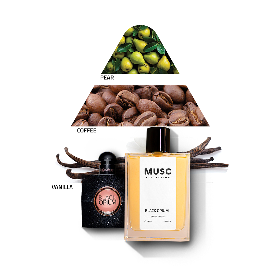Indulge in the addictive charm of Black Opium Musc Perfume, a bold amber vanilla fragrance inspired by Black Opium. It opens with a lively burst of pear, pink pepper, and orange blossom, followed by the rich warmth of coffee, jasmine, and almond. The scent settles into a creamy vanilla, patchouli, and cedar base, leaving a trail that’s both daring and irresistibly seductive.