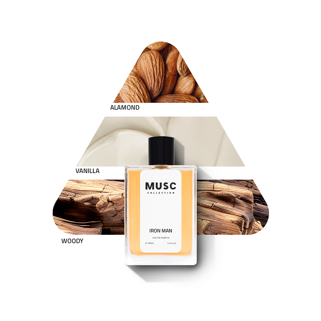 Make a statement with Iron Man Musc Perfume, a sophisticated oriental fougere for men. Inspired by strength and modern elegance, it opens with heliotrope, cumin, and bergamot, flowing into a rich heart of bitter almond, lavender, and jasmine. The warm, enduring base of vanilla, sandalwood, and amber leaves a refined, masculine trail.