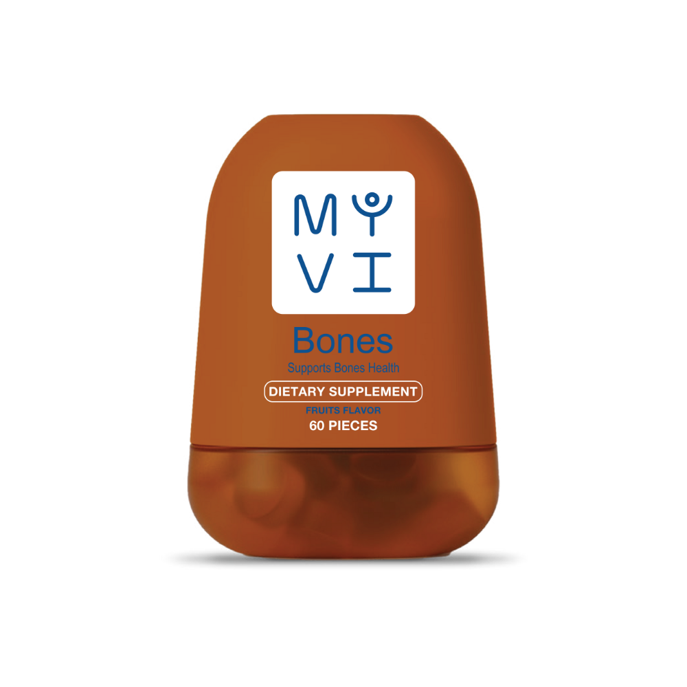 قوي، ثابت، مدعوم مع ماي ڤي. حبوب ماى بونز الجيلاتينية بتوفرلك عناصر غذائية مهمة زي الكالسيوم، فيتامين د3، وفيتامين ك2 عشان تساعدك تحافظ على صحة عظامك ومفاصلك وقوتك العامة.