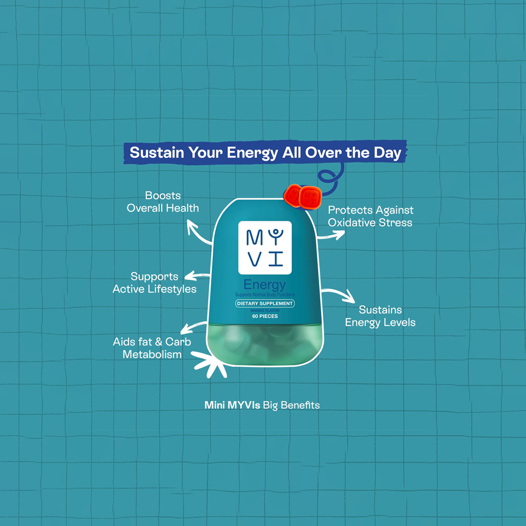 نشّط نفسك، ركّز، وعيش حياتك مع ماي ڤي. جامي ماي انرچي بتحتوي على معززات طاقة أساسية زي فيتامين ب١٢ وكوانزيم Q10 علشان تدّي يومك دفعة طبيعية.