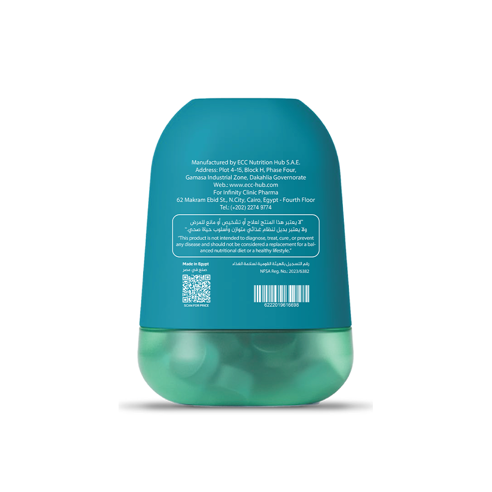 - بتساعد على طاقة مستمرة وصفاء ذهني (٣٠٠ ميكروجرام ب١٢ + ٣٠ ملجم كوانزيم Q10 في كل جرعة).