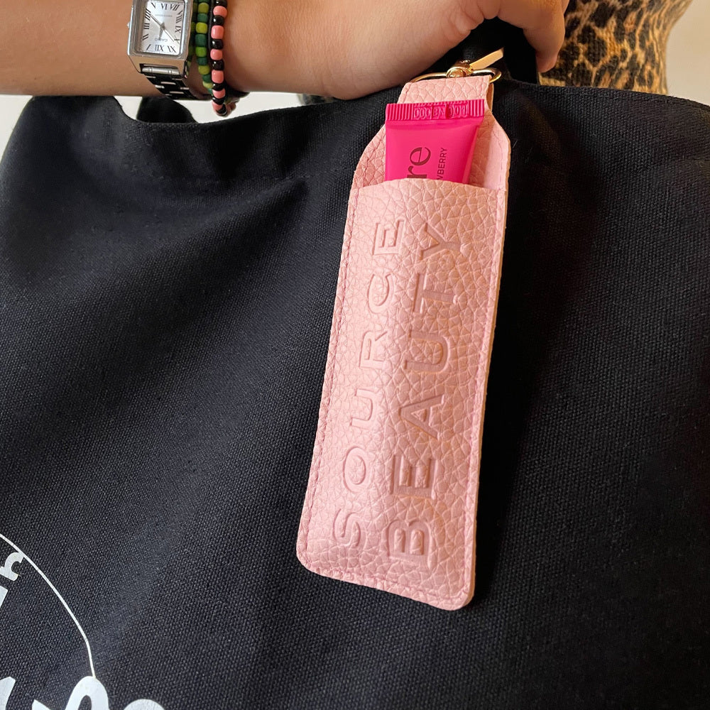 خلي مرطب الشفايف اللي دايمًا بتستخدميه معاكي في أي وقت مع حاملة مرطب الشفايف الأنيقة دي من سورس بيوتي بلون وردي هادي. مصنوعة من جلد صناعي، تقدري تعلقيها بسهولة في مفاتيحك أو شنطتك أو شنطة الميكاب. مثالية للجمال السريع، الحاملة دي شكلها حلو وعملية في نفس الوقت، لأن الشفايف الجافة مش هتستنى.