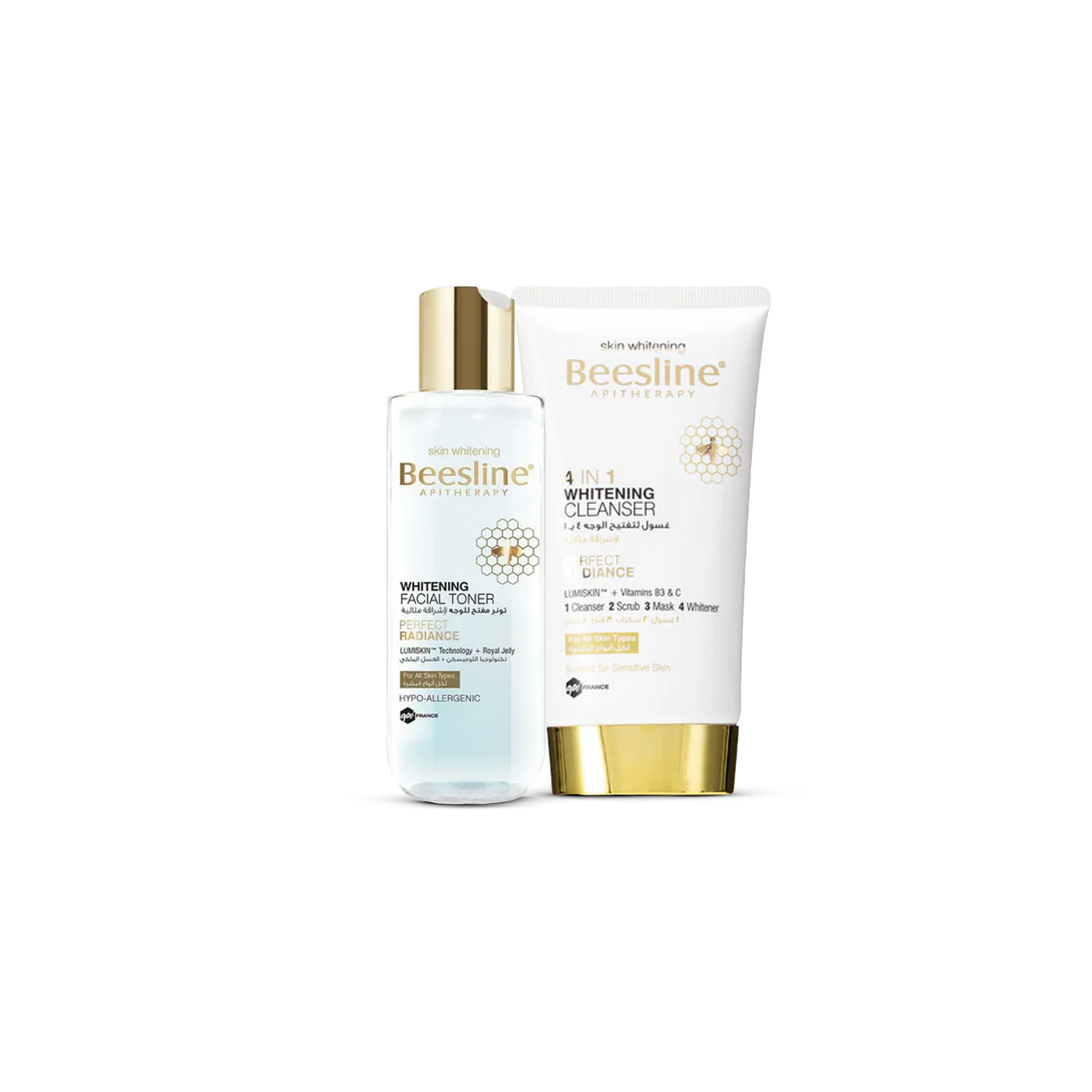 Achieve purer, lighter, and more radiant skin with Beesline's 4-in-1 Whitening Cleanser and Whitening Facial Toner. This skincare routine harnesses the power of honey and boldo bark to provide effective whitening benefits for your skin.