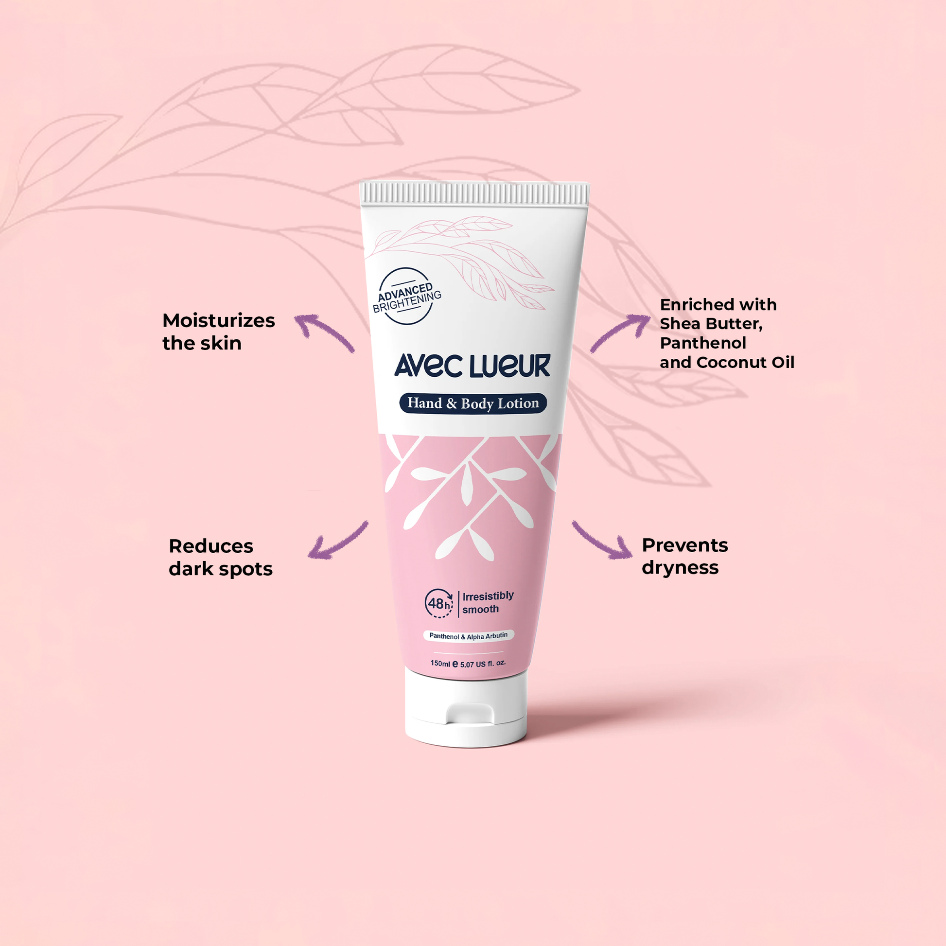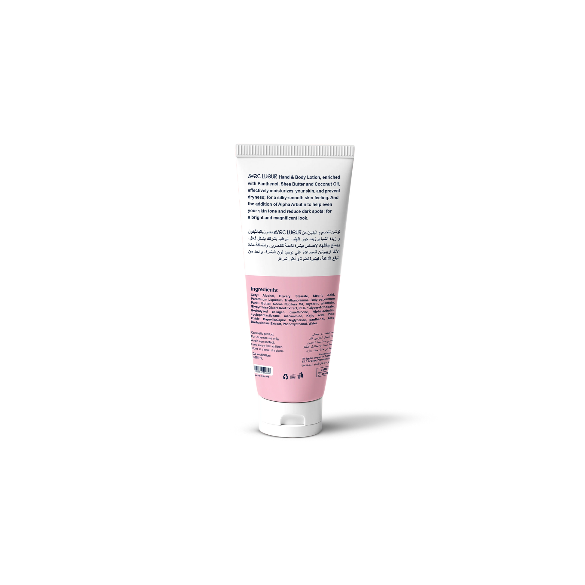 Indulge in the nourishing benefits of Avec Lueur's Hand & Body Lotion, infused with Shea Butter, Panthenol, and Coconut Oil. This luxurious lotion effectively moisturizes your skin, preventing dryness and leaving you with a silky-smooth sensation. The inclusion of Alpha Arbutin works to even out your skin tone and reduce the appearance of dark spots, promoting a bright and radiant complexion. Treat your skin to optimal hydration and achieve a magnificent look with Avec Lueur's Hand & Body Lotion.