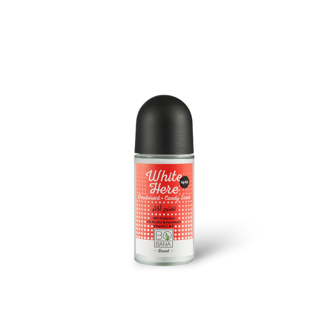 Enjoy the sweet, refreshing scent and enhanced skin care with every application of White Here Deodorant with Candy Scent from Bobana. Enriched with vitamins C and E, it provides extra whitening benefits while being free from alcohol and aluminum. Its soft, creamy texture ensures a smooth application on your skin.