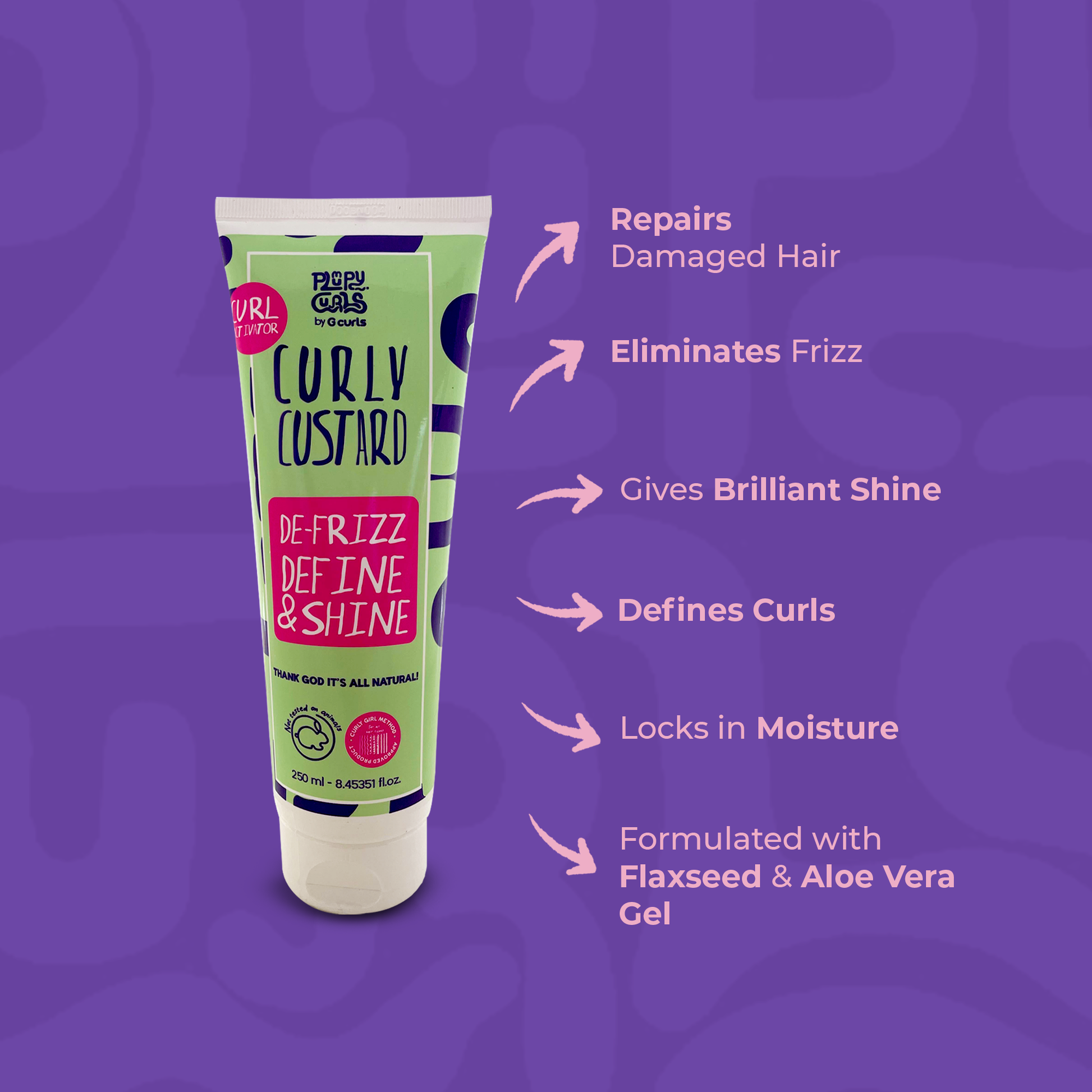 Eliminate frizz, lock in moisture, and define your curls with this Plumpy Curls Curly Custard. This curl control jelly is formulated with a blend of flaxseed gel and aloe vera to help provide perfect curl definition and long lasting hold. This product will help maintain the moisture levels and reduce breakage, leaving you with shinier and healthier hair. 100% free from Parabens, sulfates, silicone, phthalates paraffin, mineral, oil, petrolatum.