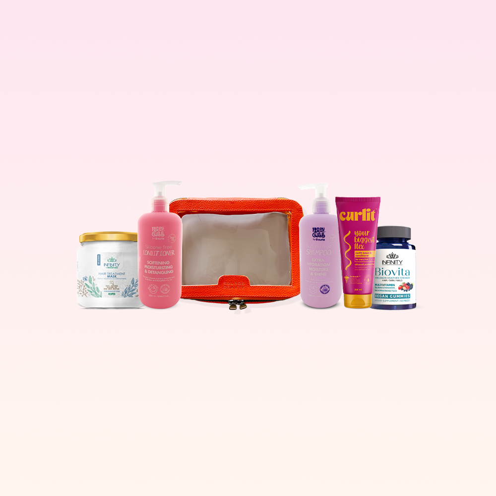 Your curls deserve the best, and the Curly Hair Heroes bundle delivers just that. This complete curl-care routine brings together top products from Infinity Naturals, Curlit, and Plumpy Curls to cleanse, hydrate, and define your curls without weighing them down. It’s the ultimate set for soft, bouncy, and frizz-free hair, all packed in a sleek travel bag.