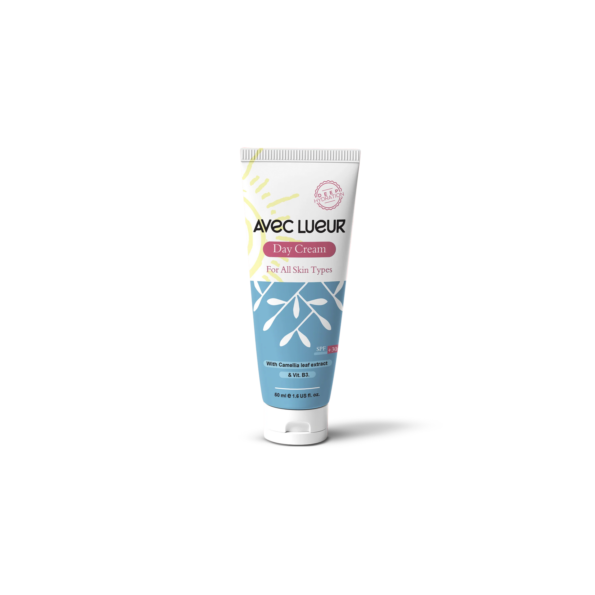 Achieve deep hydration and improved elasticity with Avec Lueur's Day cream. Formulated with niacinamide (Vitamin B3), it enhances skin moisture levels, resulting in a firm and youthful appearance. This cream is also enriched with UV protection agents and antioxidants, which help reduce the negative effects of sun exposure. The addition of camellia leaf extract ensures optimal hydration levels, leaving your skin nourished and revitalized. Experience the benefits of deep moisturization, increased elasticity, and a radiant, youthful look with Avec Lueur's Day cream.