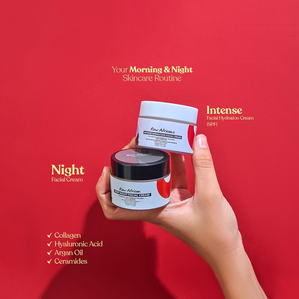 Improve hydration and your skins’ elasticity with this Raw African Night Facial Cream. The inclusion of ceramides improves the health of your skin cells and will create a barrier to lock in moisture. The collagen plays a vital role in boosting hydration and creating a youthful complexion.