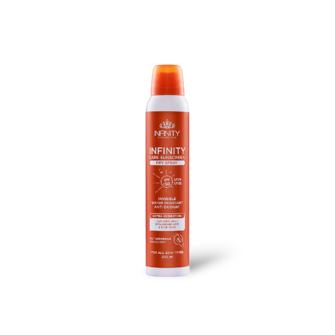 Experience effortless sun protection with Infinity's Sunscreen Dry Spray SPF50+. This versatile spray is suitable for all skin types, including sensitive skin, and is designed to shield against harmful UVA and UVB rays. Its unique spray format ensures quick and easy application, allowing you to reach every angle without missing spots. Ideal for use before and after makeup, it absorbs quickly without leaving a sticky residue.