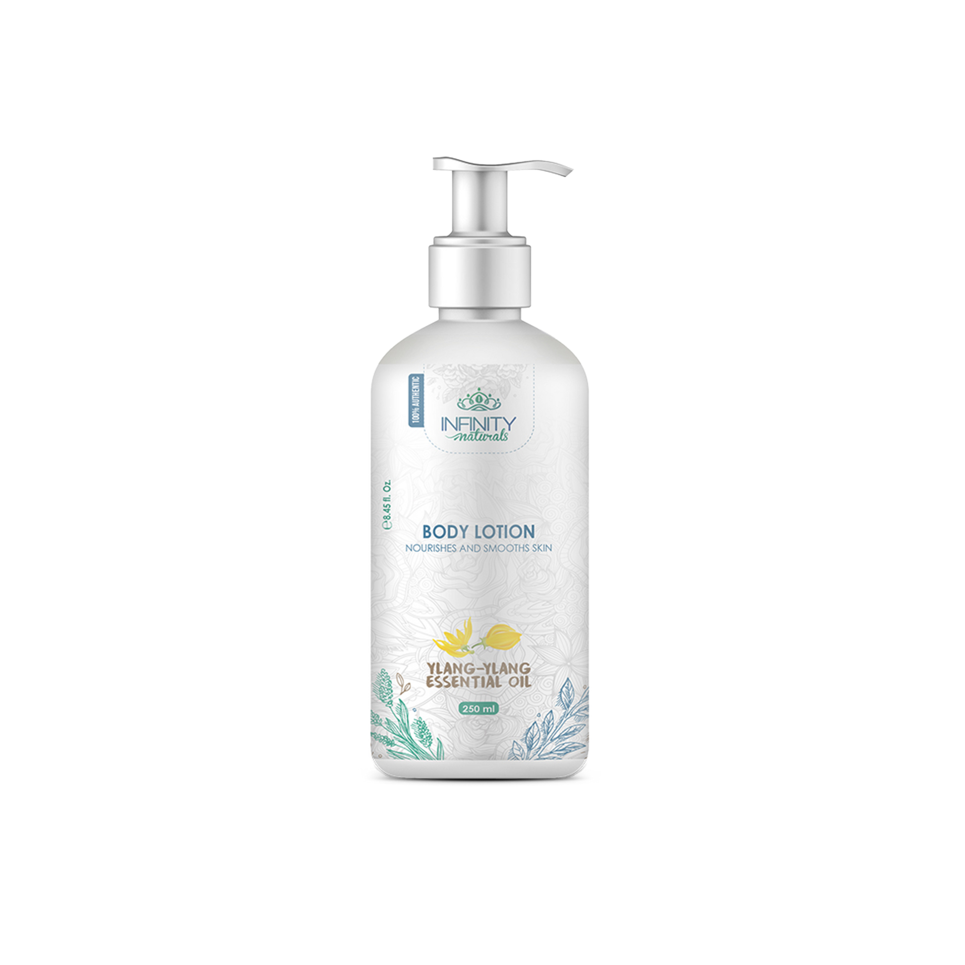 Experience the benefits of Infinity's Naturals Body Lotion, a light weight formula that provides gentle hydration to nourish and soften dry skin. It effectively moisturizes without leaving a greasy residue, ensuring a comfortable and non-greasy feel. With regular use, it helps to restore and replenish the skin, leaving it feeling nourished and plump. Additionally, it is Infused with Ylang Ylang essential oil.