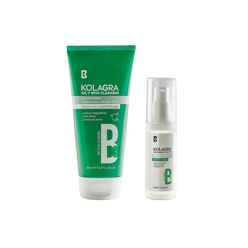 Balance, purify, and renew your skin with this targeted duo designed for oily and acne-prone skin. The Kolagra Oily Cleanser and Niacinamide Serum work together to control excess oil, tighten pores, and treat post-acne pigmentation, giving you a clearer, more refined complexion. Deep yet gentle cleansing for oily and acne-prone skin. This promo pack is your go-to solution for clarity, balance, and visible results.