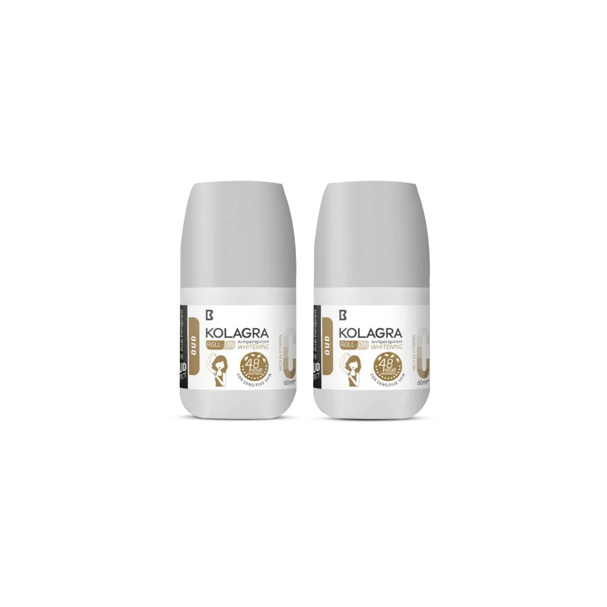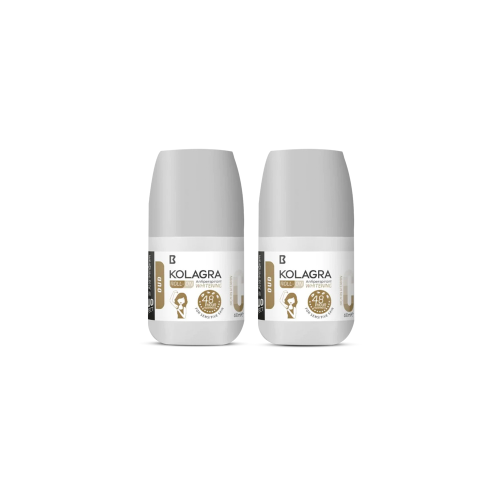 The Kolagra Whitening Roll-On Deodorant Oud is a 2 in 1 product that will whiten and keep your underarms fresh and protected. This deodorant is free from alcohol and salts, making it safe and effective for all skincare. It will not only protect you from sweat but also delay hair growth. Enjoy a fresh and confident feeling all day with the Kolagra Whitening Roll-On Deodorant.