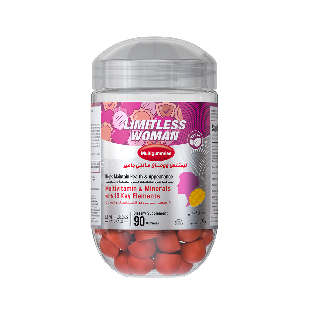 Support vitality and overall health with Limitless Woman Multi Gummies Jar. Packed with vitamins, minerals, and antioxidants, they help boost immunity, support energy production, and maintain overall health, while providing a delicious mango-flavored daily supplement.