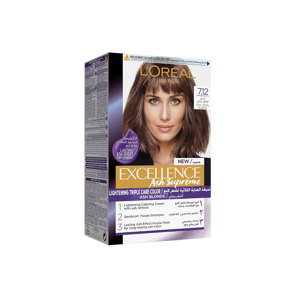 Achieve salon-quality color and care at home L'Oréal Paris Excellence Ash Supreme 7.12 Cool Pearl Blonde is a premium permanent hair dye that delivers a luminous, cool-toned pearl-blonde shade while protecting and nourishing your hair. With its triple-care system including a protective pre-color serum, rich coloring crème, and a nourishing conditioning mask — this dye doesn’t just color your hair; it helps keep it soft, smooth, and vibrant. Whether you're covering greys or refreshing your look, it gives rich, long-lasting colour and a refined ash-blonde finish that neutralizes warmth and brassiness.