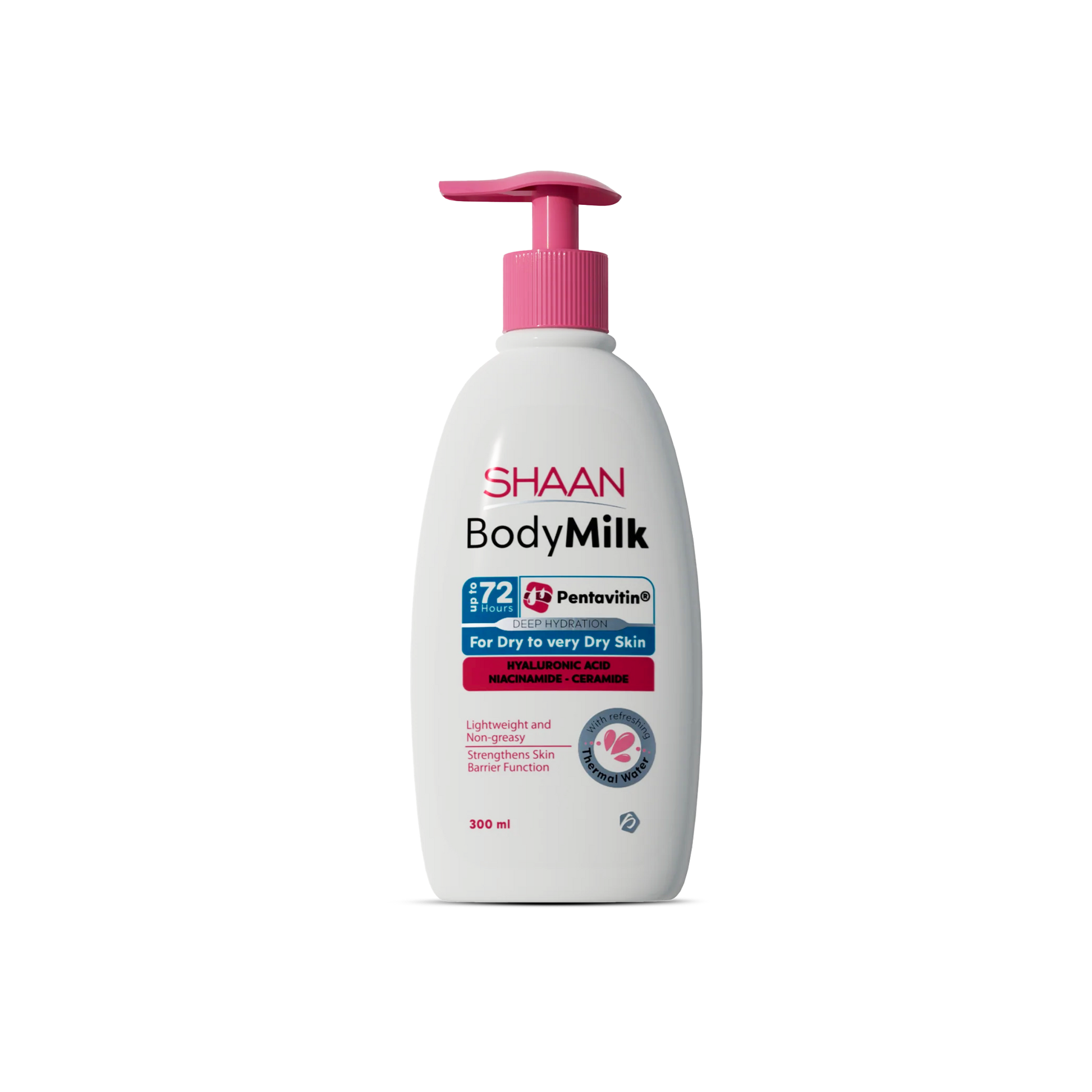 Shaan's Body Milk is a hydrating solution for dry and sensitive skin or eczema. It provides deep hydration that lasts for 72 hours, thanks to its ingredients like ceramides, hyaluronic acid, shea butter, and niacinamide. The lotion is fragrance and paraben-free and enriched with vitamin B3, vitamin E, and shea butter. Its special formula offers soothing and nourishing properties for moisturized skin.