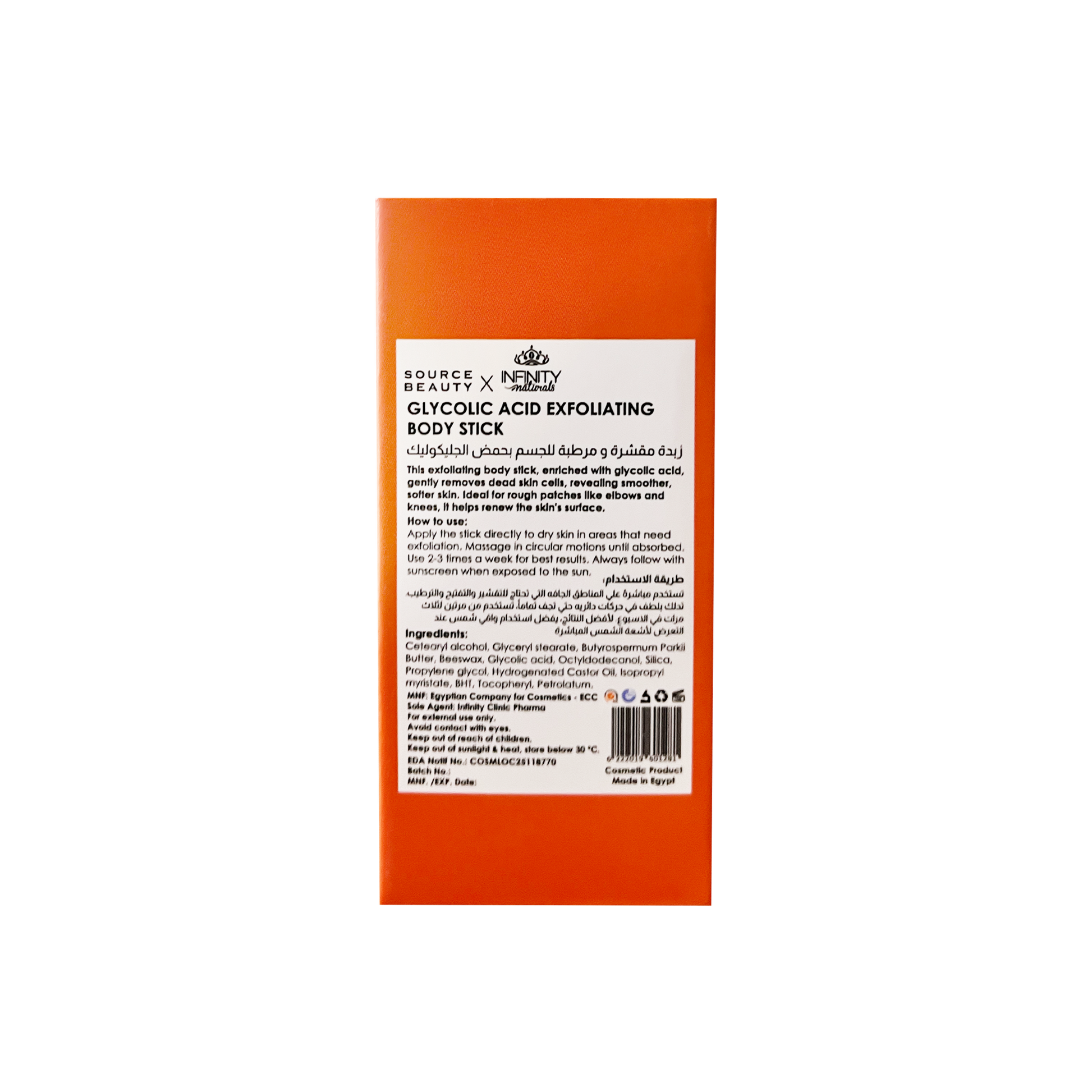 | This exfoliating body stick is expertly formulated with glycolic acid to gently yet effectively remove dead skin cells, helping to reveal smoother, softer, and more refined skin. Its targeted stick format makes it easy to apply directly to rough or uneven areas such as elbows, knees, heels, and other dry patches that need extra care. By promoting skin renewal, it helps improve texture and enhance the skin’s natural brightness over time. With regular use, this exfoliating body stick leaves the skin feeling refreshed, visibly smoother, and revitalized, making it an essential step in your body care routine for healthier-looking skin. Key Features