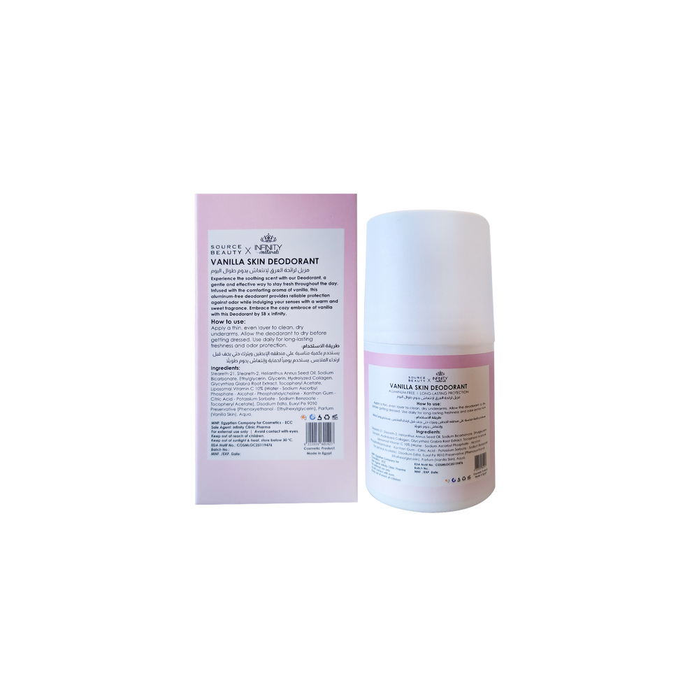 Experience the soothing scent with our Vanilla Skin Deodorant, a gentle and effective way to stay fresh throughout the day. Infused with the comforting aroma of vanilla, this aluminum-free deodorant provides reliable protection against odor while indulging your senses with a warm and sweet fragrance. Embrace the cozy embrace of vanilla with the Vanilla Skin Deodorant by SB x Infinity.