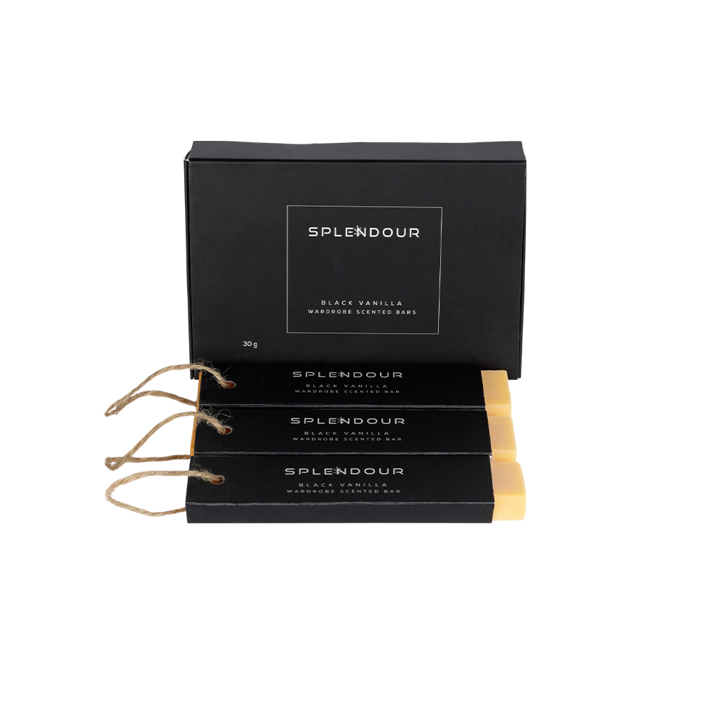 Energize your wardrobe with the Black Vanilla Scented Bar. Made from 100% natural soy wax, each bar releases a long-lasting, eco-conscious fragrance that adds both elegance and freshness to your closet. The deep, subtly sweet scent of black vanilla boosts focus and gently repels unwanted odors and insects, perfect for creating a more refined wardrobe space.