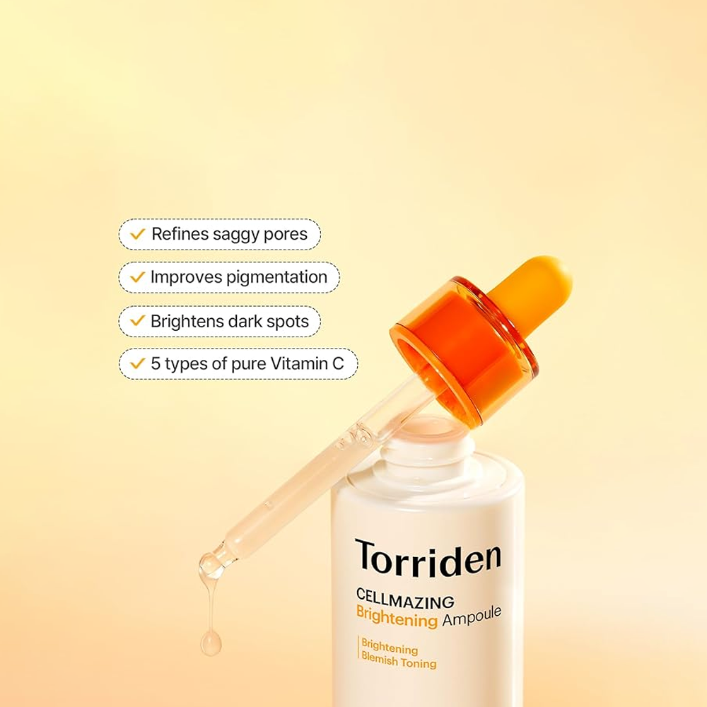 Brighten dull skin and fade dark spots with the Cellmazing Brightening Ampoule. This gentle yet powerful formula uses stabilized Vitamin C and soothing hydrators to visibly even skin tone, refine pores, and boost radiance. Designed for sensitive skin, it delivers a luminous, clear finish without irritation.