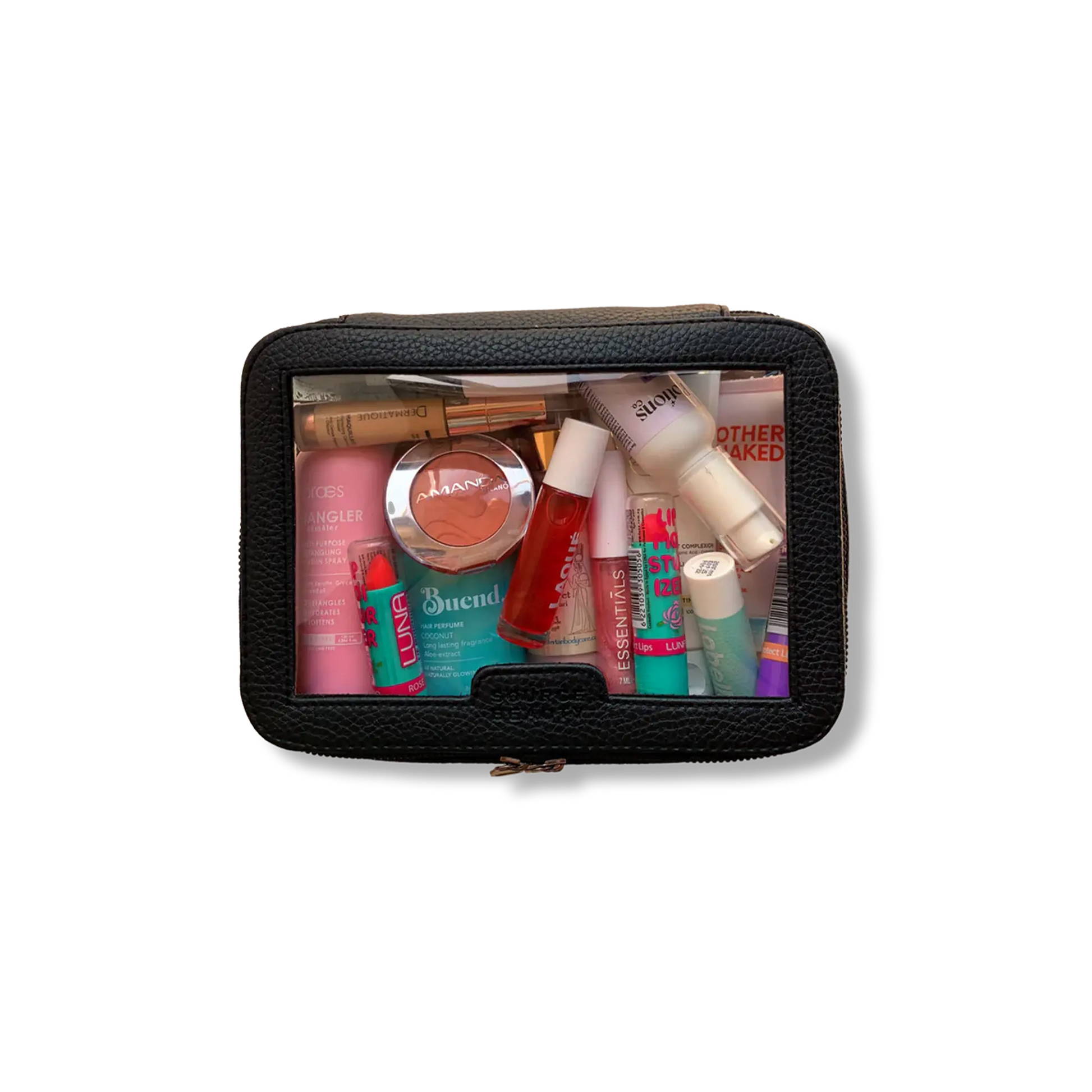 Your ultimate solution for organizing and storing all your beauty essentials to have on the go! It comes in two sizes to cater to your needs, whether you want to take the beauty bag on long trips, organize your beauty products at home or have the mini in your personal bag on the go for daily errands. The transparent panels allow for easy visibility of the contents, and they can be effortlessly wiped clean for convenience.